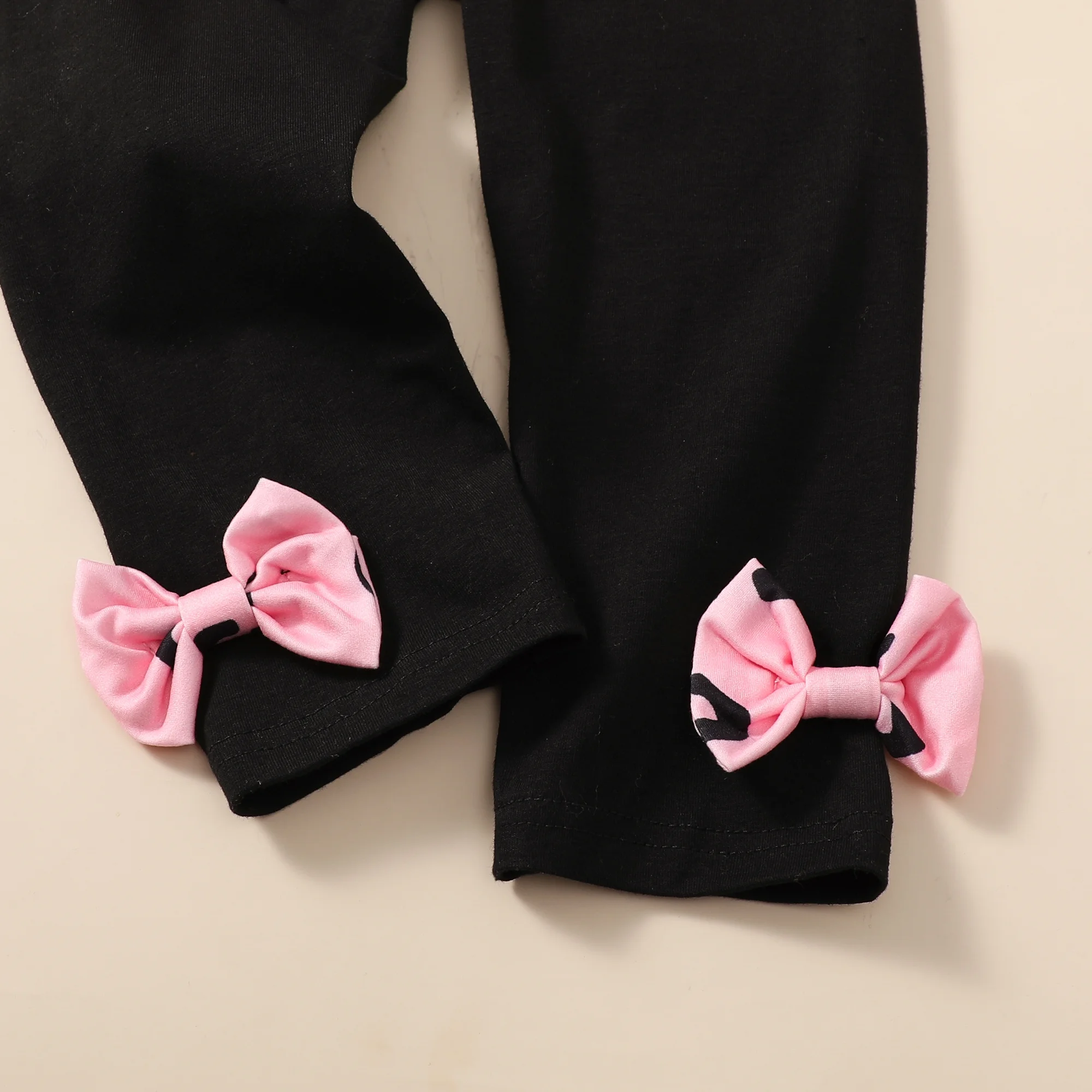 - The beautiful outfits with cute and adorable design: long sleeve, pink top and black pants.