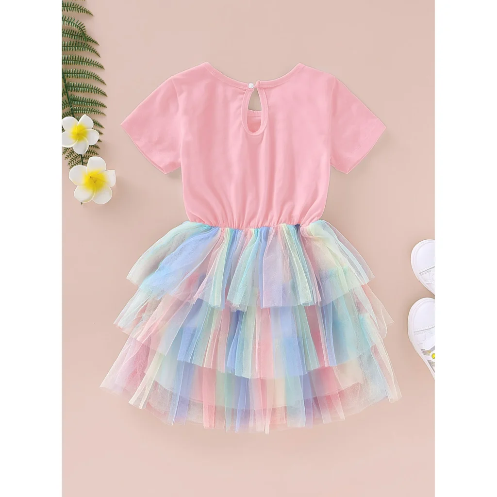 Infant Baby Girls Clothes 12 Months to 6T Toddler Girls Summer Dress Short Sleeve Dress Unicorn Dress Tulle Dress Pink Dress