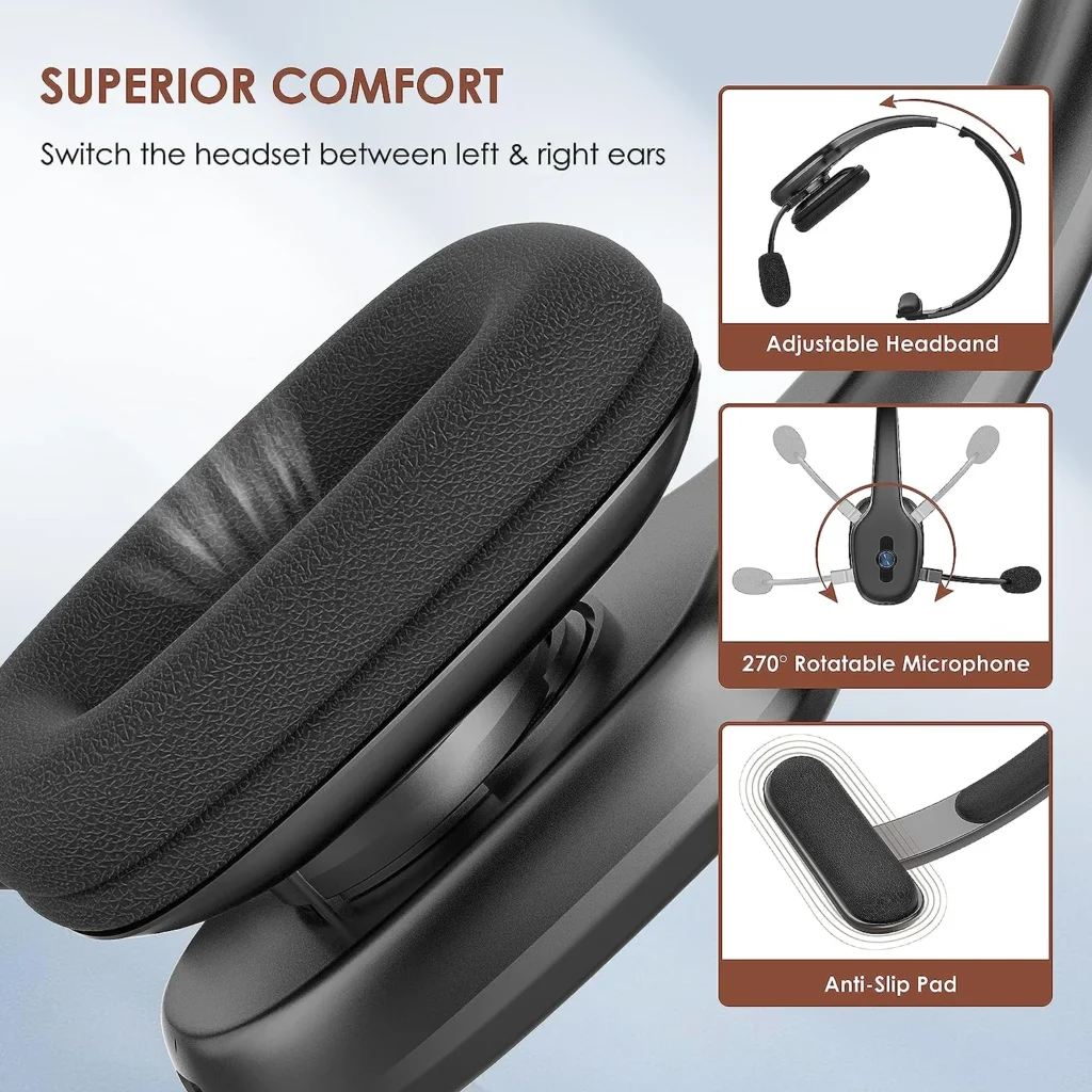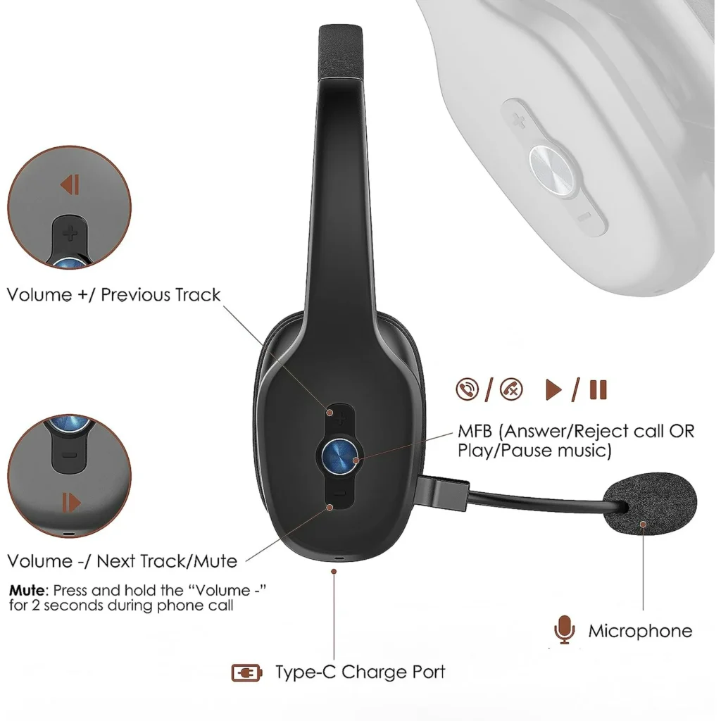 - 【Bluetooth 5.3 and Widely Compatible】Wireless headset with mic supports iOS, Android and Windows. Adopts advanced Bluetooth 5.3 technology with 2X faster connection speed and signal stability compared to Bluetooth 5.2. With memory function, just turn on the headset to connect automatically next time you use it.