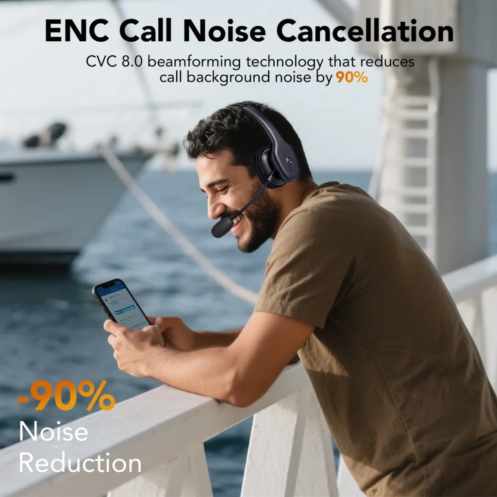 - 【ENC Clear Call Noise Cancellation】The bluetooth headphones over ear has 2 built-in microphones. CVC 8.0 Wave Velocity Shaping technology, accurate sound pickup, can effectively reduce 90% of the background noise during the call. Bring you a clearer call experience. Perfect for video calls or online meetings.