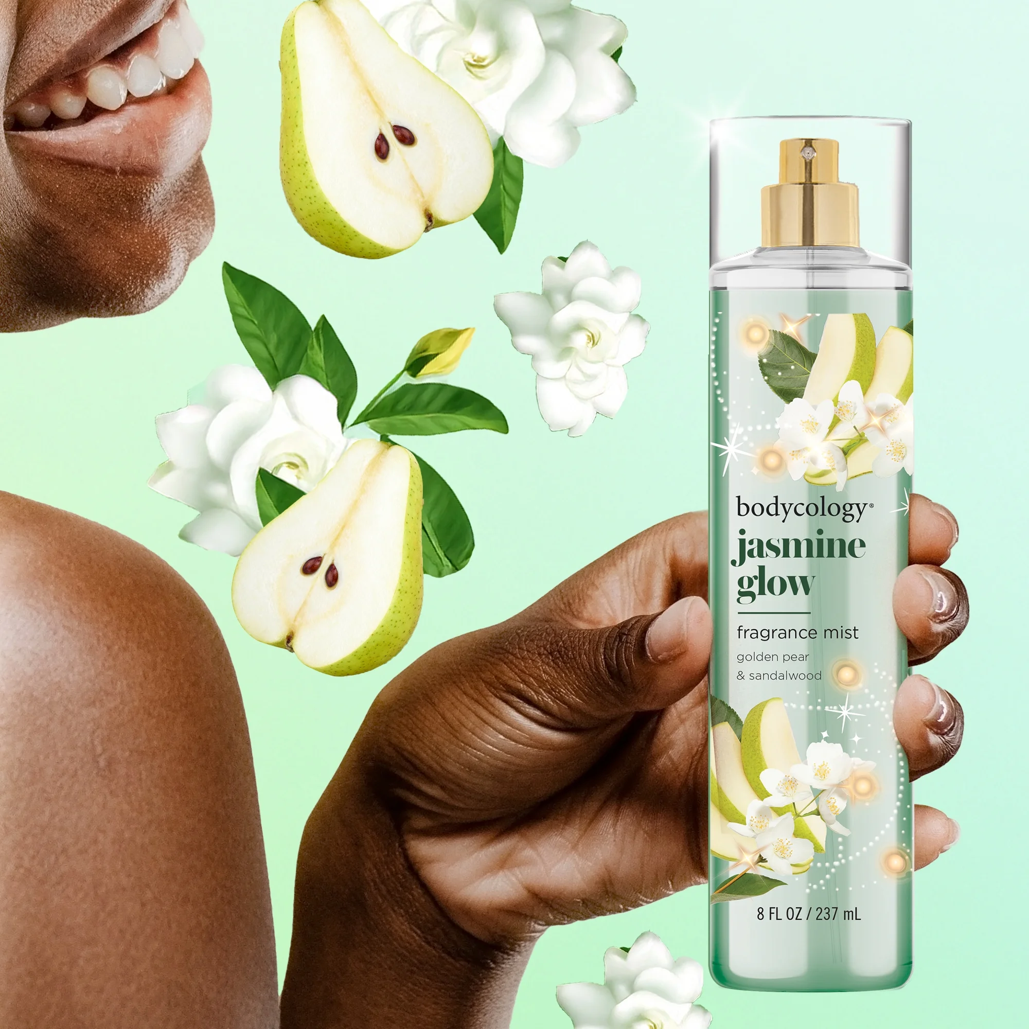Add a touch of radiance to your day with Bodycology Jasmine Glow Fragrance Mist. This light and refreshing mist wraps you in the glowing notes of golden pear, white gardenia, and soft sandalwood, creating a warm and floral fragrance that is perfect for any occasion. Lightly spritz for a subtle glow or layer generously for a lasting impression. Pair with Jasmine Glow Body Cream and Body Wash to enhance the scent and keep the fragrance with you all day long. Free of parabens, phthalates, and always cruelty-free, this mist is your perfect go-to for a radiant escape. Great for everyday use.