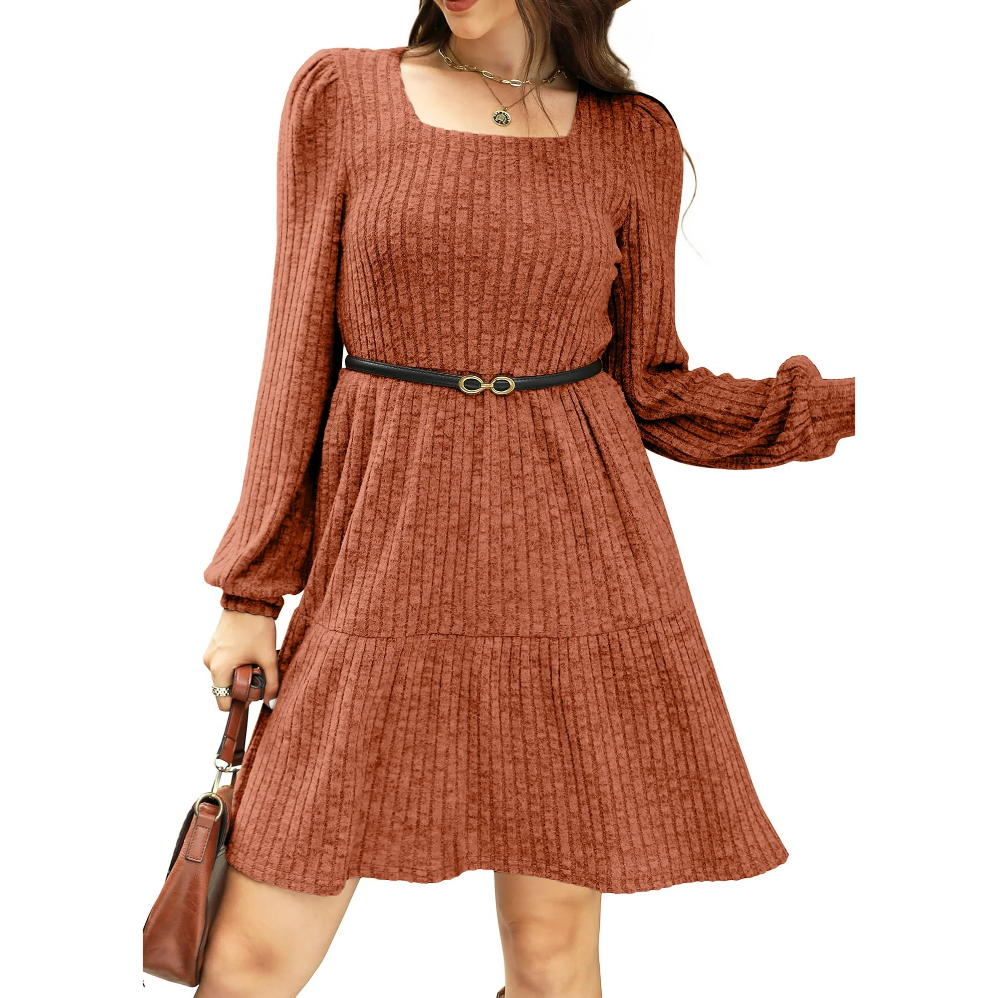 • 👗 【Versatile Collocation】 – Long sleeve babydoll dress for women is a versatile wardrobe staple that pairs beautifully with your favorite seasonal essentials. Style knit dresses with leggings and ankle or knee-high boots for a cozy, layered look, or add a belt to define your waist for a more polished silhouette. Top it off with a vest, coat, or oversized jacket for extra warmth and flair. Womens fall dresses elegant square neckline looks stunning with statement necklaces, square neck casual dress drawing attention to your collarbone and adding a touch of sparkle to your outfit. Whether you’re dressing up or keeping it casual, womens sweater dress easily transitions from day to night.