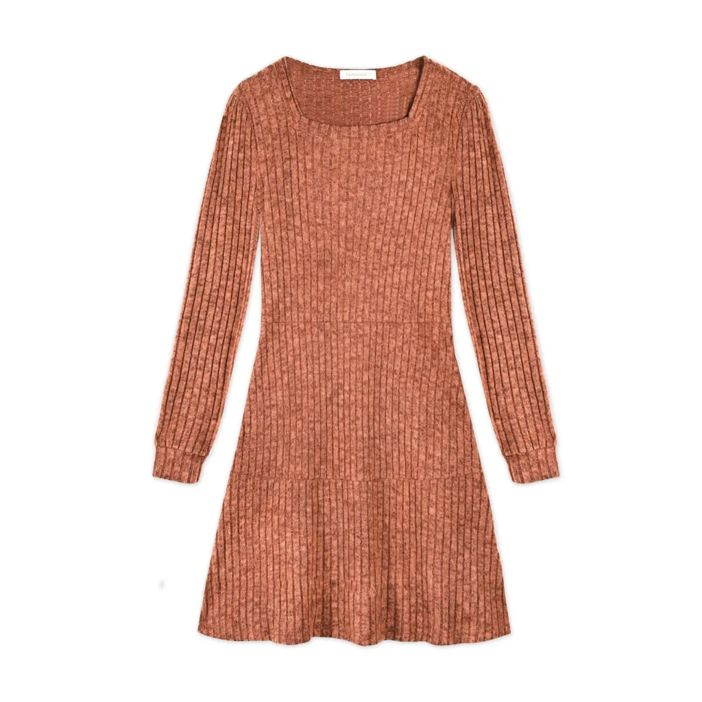 Fantaslook Fall Dresses for Women Square Neck Long Sleeve Dresses Casual Babydoll Sweater Dress