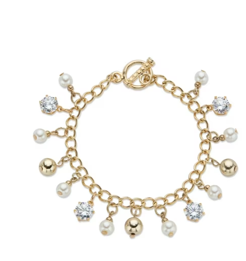 Be the first to review “PalmBeach Jewelry Round Crystal and Genuine Cultured Freshwater Pearl Beaded Charm Toggle Closure Bracelet in Goldtone 7.5″”
