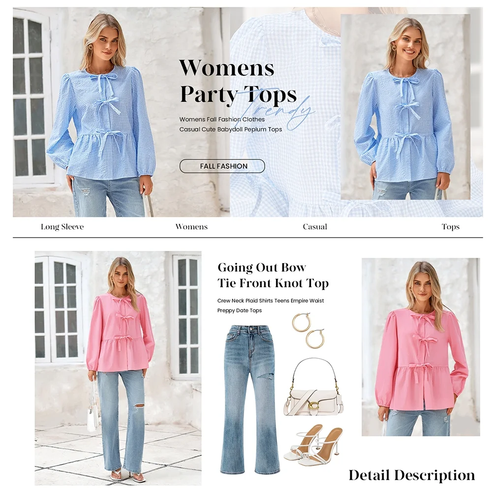 • 👑👑Chic Designs: Long Sleeve Shirts; Crew Neck Tops for Women; Womens Fall Fashion; Tie Front Tops; Womens Babydoll Top; Peplum Blouses; Ruffle Tops; Empire Waist Tops for Women; Bow Tie Blouse; Knot Front Top; Plaid Shirts; Puff Sleeve Blouse