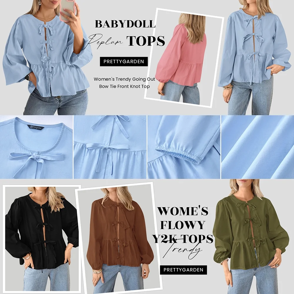 Be the first to review “PRETTYGARDEN Women’s Spring Fall Babydoll Peplum Blouse Shirt Puff Long Sleeve Bow Tie Front Trendy Cute Y2K Going Out Tops”